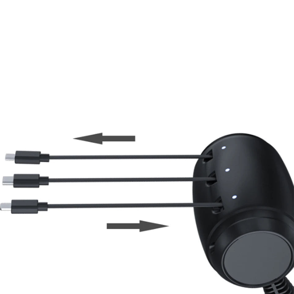 O Carrega All 3 em 1 resolve o caos com carregamento rápido, organizado e prático para todos os passageiros ao mesmo tempo!
