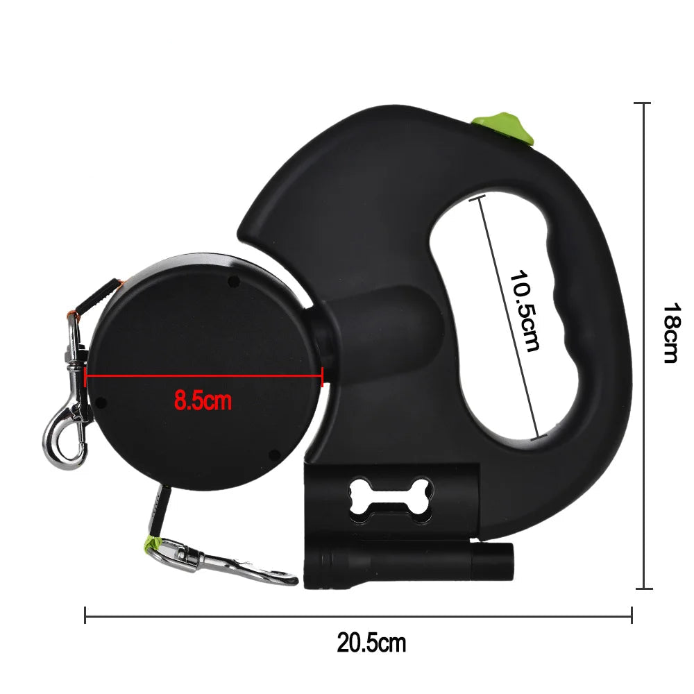 Com um sistema duplo retrátil com rotação 360°, cada cão se movimenta livremente sem que as guias se enrosquem.