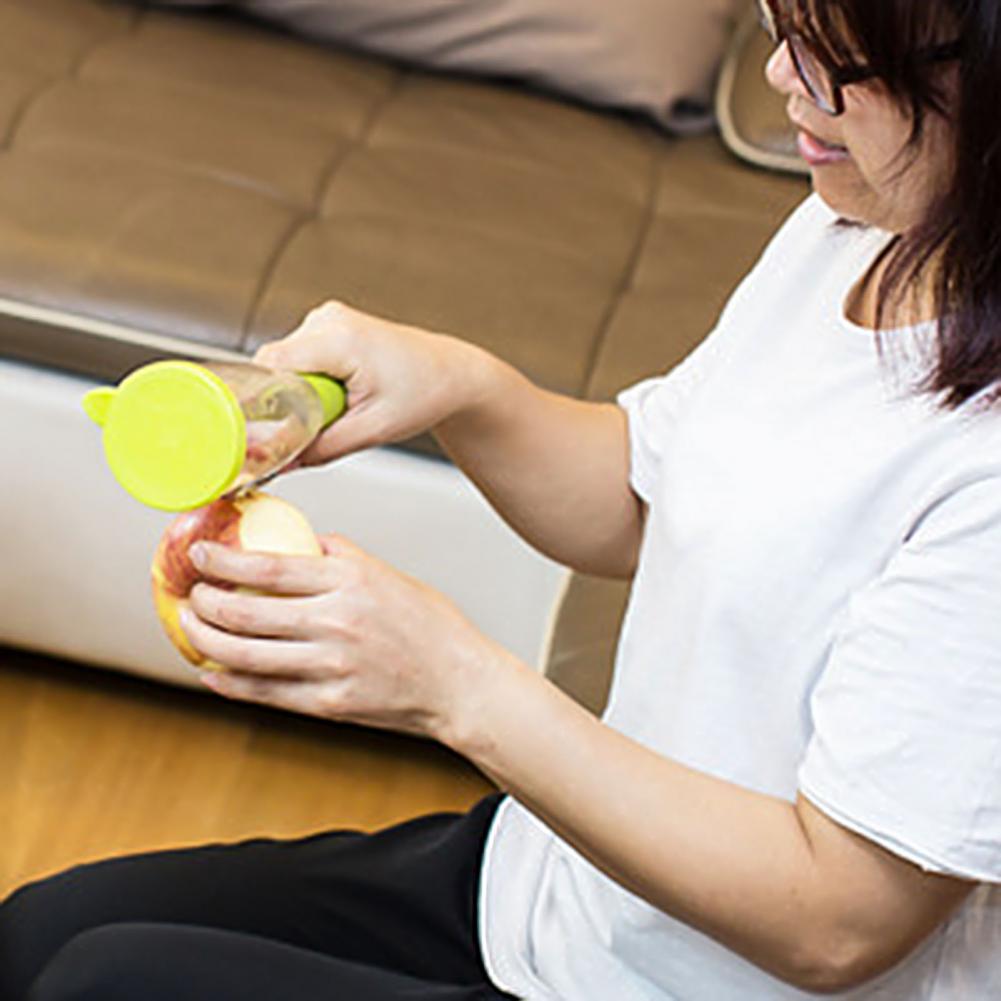 Este descascador de frutas e vegetais é construído com um armazenamento, e pode ser facilmente aberto para pegar todas as cascas dentro da ferramenta para uma limpeza rápida e sem sujar o ambiente do balcão.