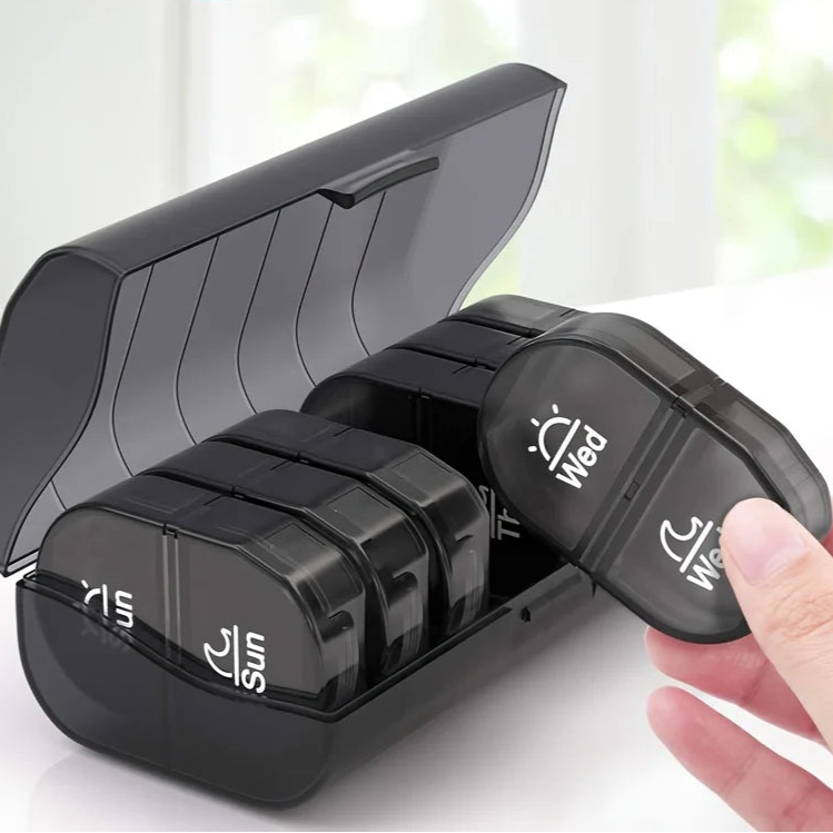 Discreto por fora, espaçoso por dentro: comporta todos os comprimidos da semana com segurança.