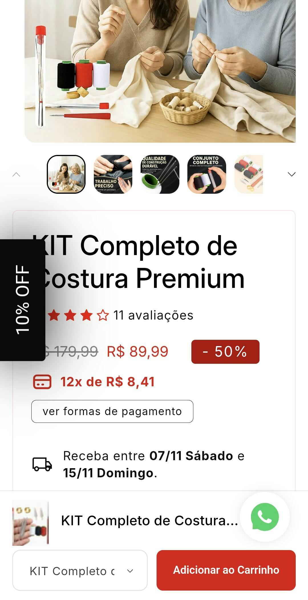 Com o KIT Completo de Costura Premium, você tem tudo em um só lugar — pronto para usar, onde e quando precisar!
