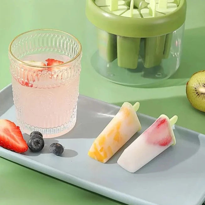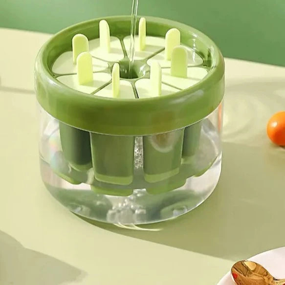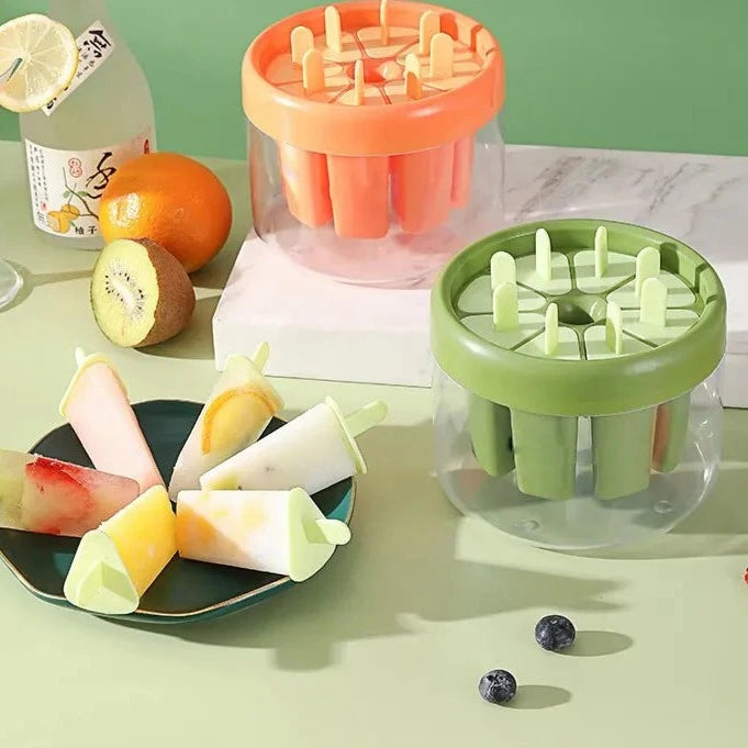 Conheça o nosso Molde de Picolé da Magia da Casa, projetado para fazer até 8 picolés de uma vez, disponível nas cores verde e laranja !