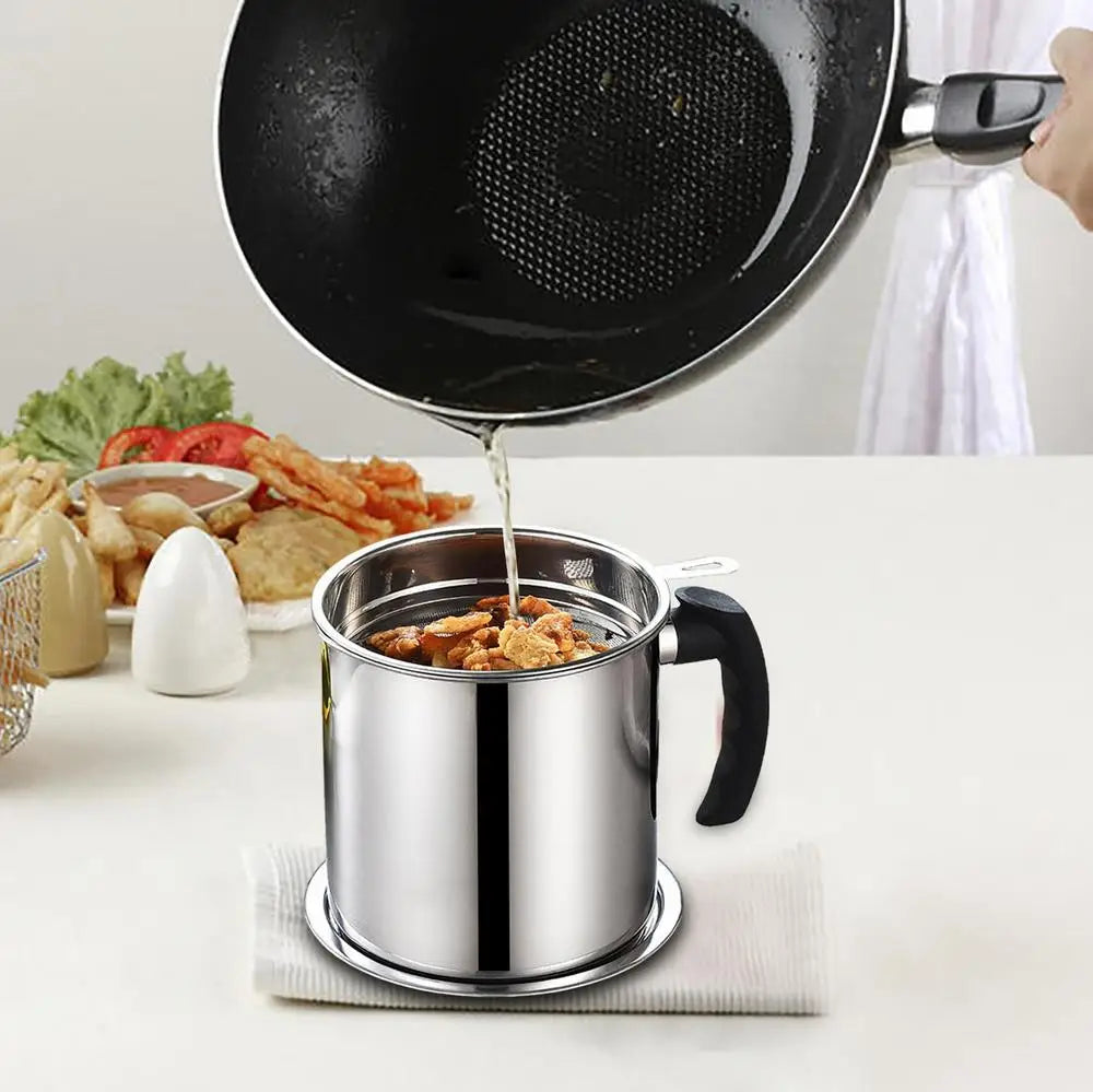 - Aplicação Ampla: O coador de óleo é adequado para gordura de bacon, óleo de cozinha, óleo de coco, gordura e óleo de fritura, sendo reutilizável e proporcionando fácil armazenamento.