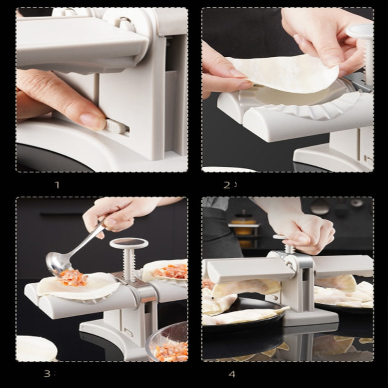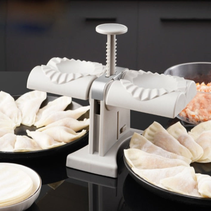 Este molde de prensa de cabeça dupla permite que você faça pastéis e outros salgados de forma mais rápida e conveniente.
