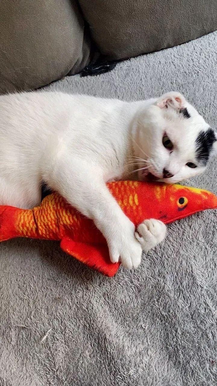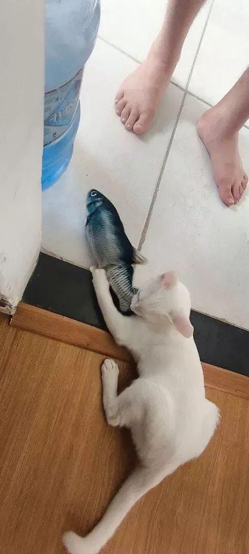 Diferente dos brinquedos tradicionais, o Peixe Interativo Felino possui formato ultra realista, textura macia e tamanho ideal para o gato morder, atacar, chutar e abraçar — exatamente como faria com uma presa de verdade.