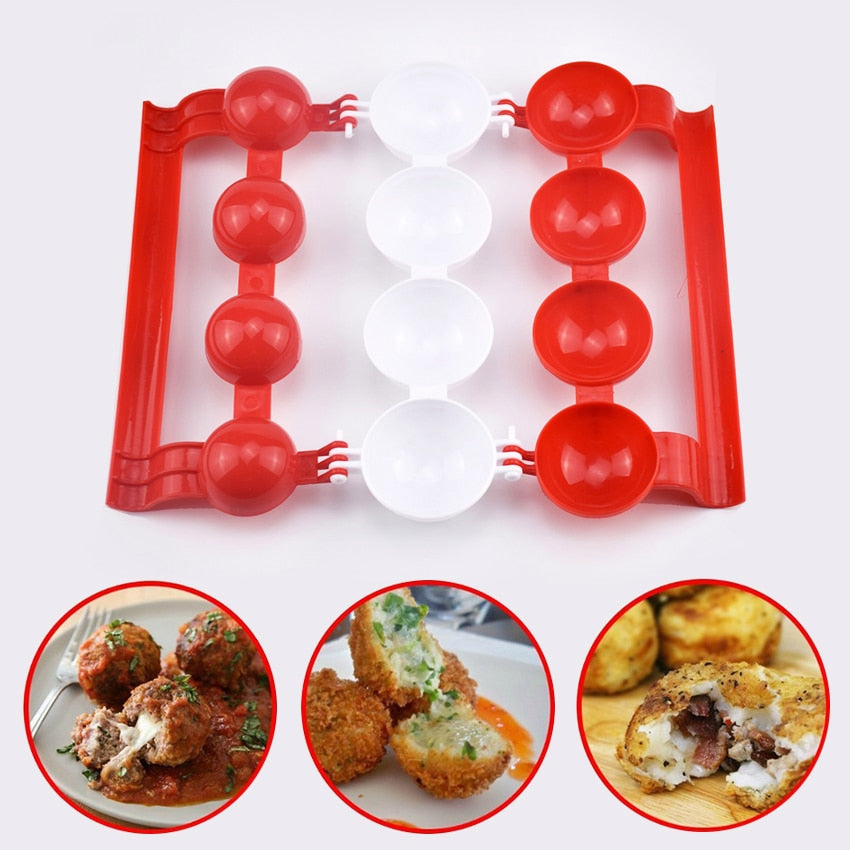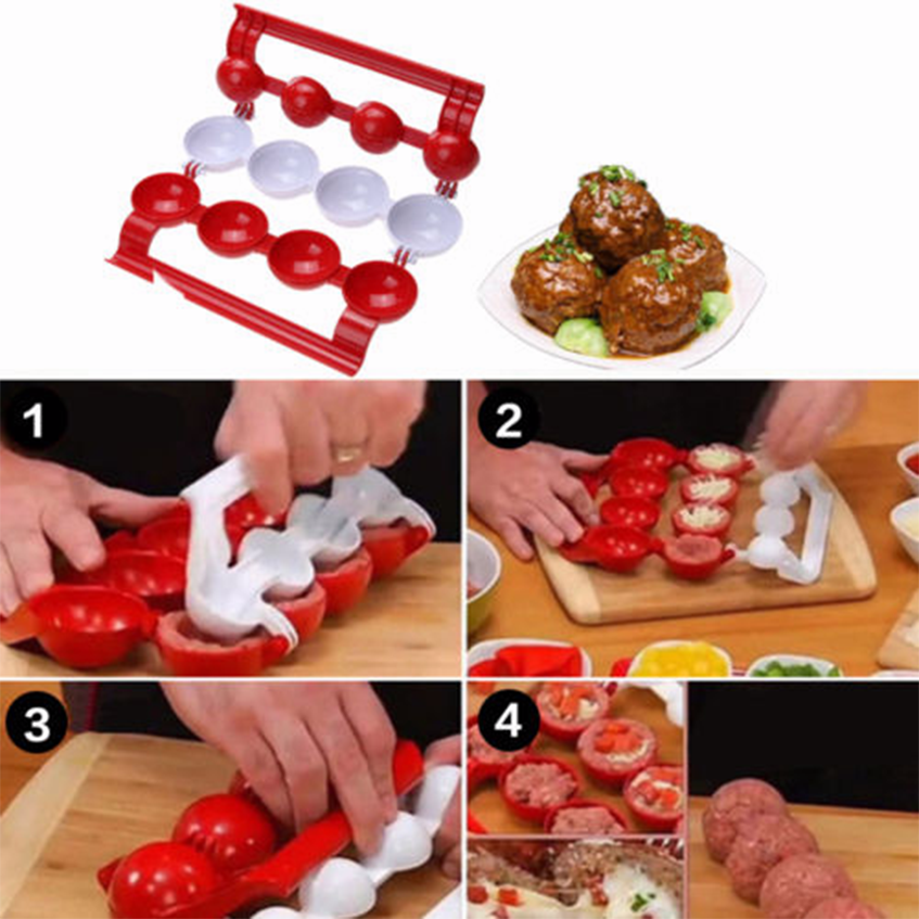 Fácil e prático: maquie simultaneamente 4 almôndegas grandes recheadas ou não recheadas com esta ferramenta fácil de usar com uma só pressão
